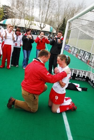 Surrounded by Alex teammates and friends Guy goes down on one knee in the goalmouth to ask Gillian to marry him. There wasn't a dry eye in the place let me tell you :)